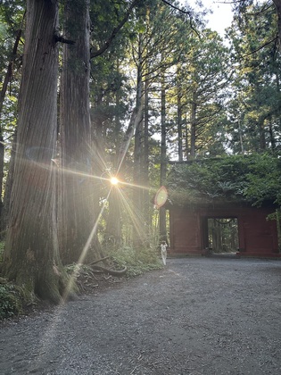 早朝4時30分に宿坊を出発して、まだ暗い杉並木を抜けて奥社へ。