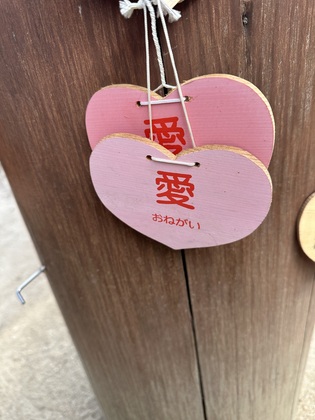 次に弁天池へ向かうと、足元に「愛」と書かれた絵馬が落ちていました。