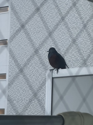 なんと、幸運の象徴「イソヒヨドリちゃん」が我が家のベランダに来て10分ほど滞在。