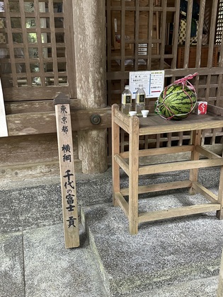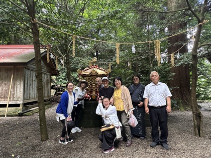 その後、ポンポン塾から台風で傷んでしまった鳥居のしめ縄の奉納や境内の木々の伐採などのご寄進をさせていただき、
