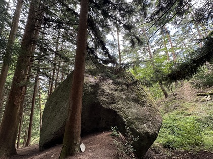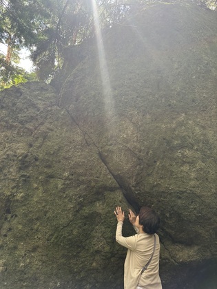 諏訪では「おふくろ石」にご縁をいただきました。中央構造線とフォッサマグナの上にそびえる要の磐座